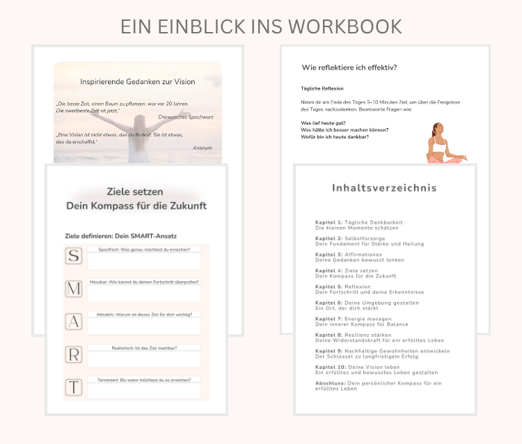 Dieses Workbook begleitet dich auf deinem Weg zu mehr Klarheit, innerer Stärke und Lebensfreude.